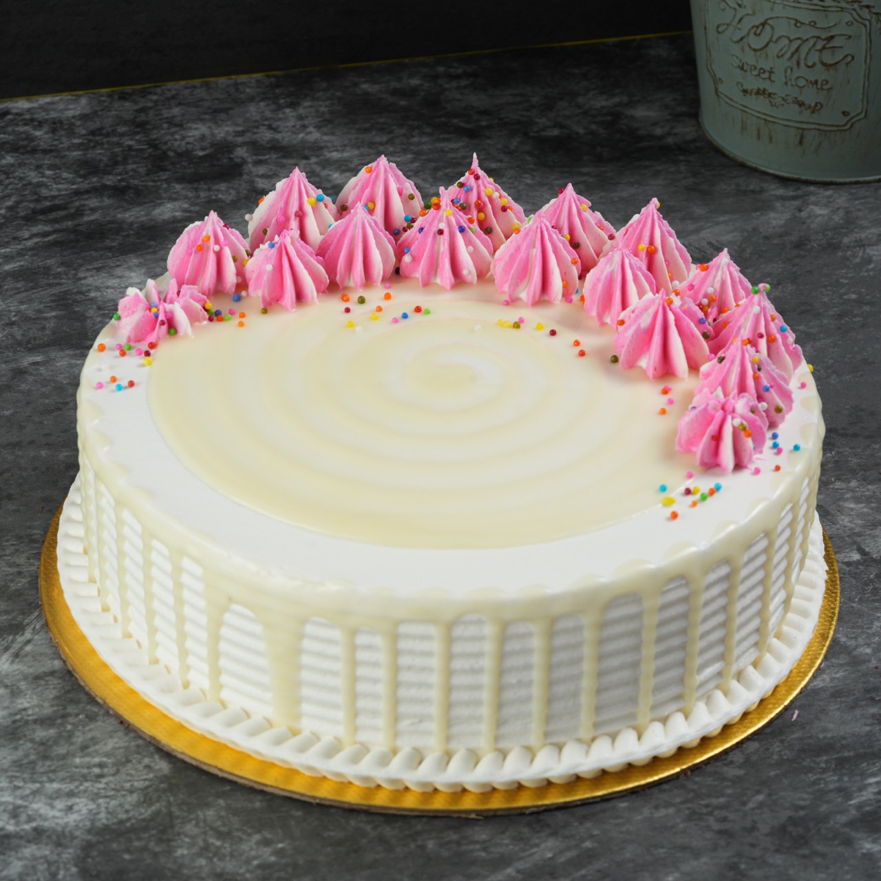 Timeless vanilla elegance with soft sponge and smooth, buttery cream in every bite.